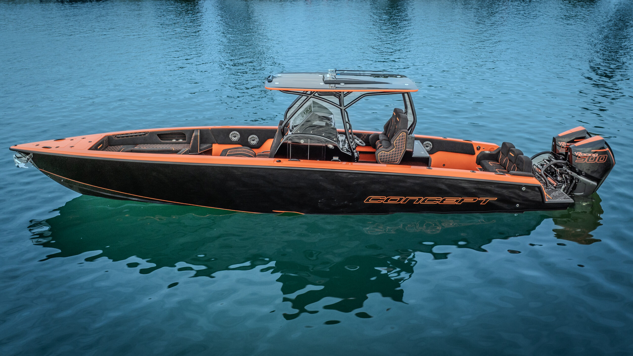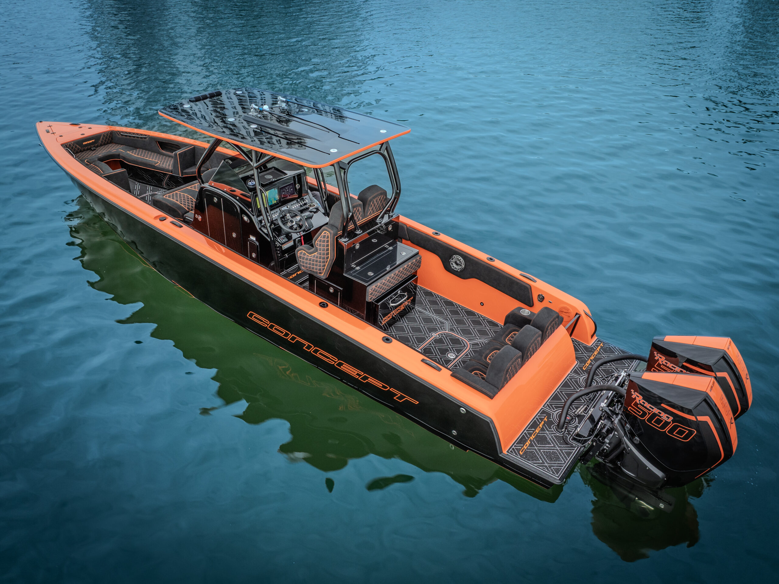 The Concept 36′ Open Deck Series is designed for ultimate performance with an angler-friendly center console layout. Powered by twin or triple outboards, the deep-V stepped hull glides through choppy waters to produce a stable ride. The open deck is just as well suited for a fun day at the local sandbar with family and friends. The outboard powered Concept 36′ Open can really do it all.