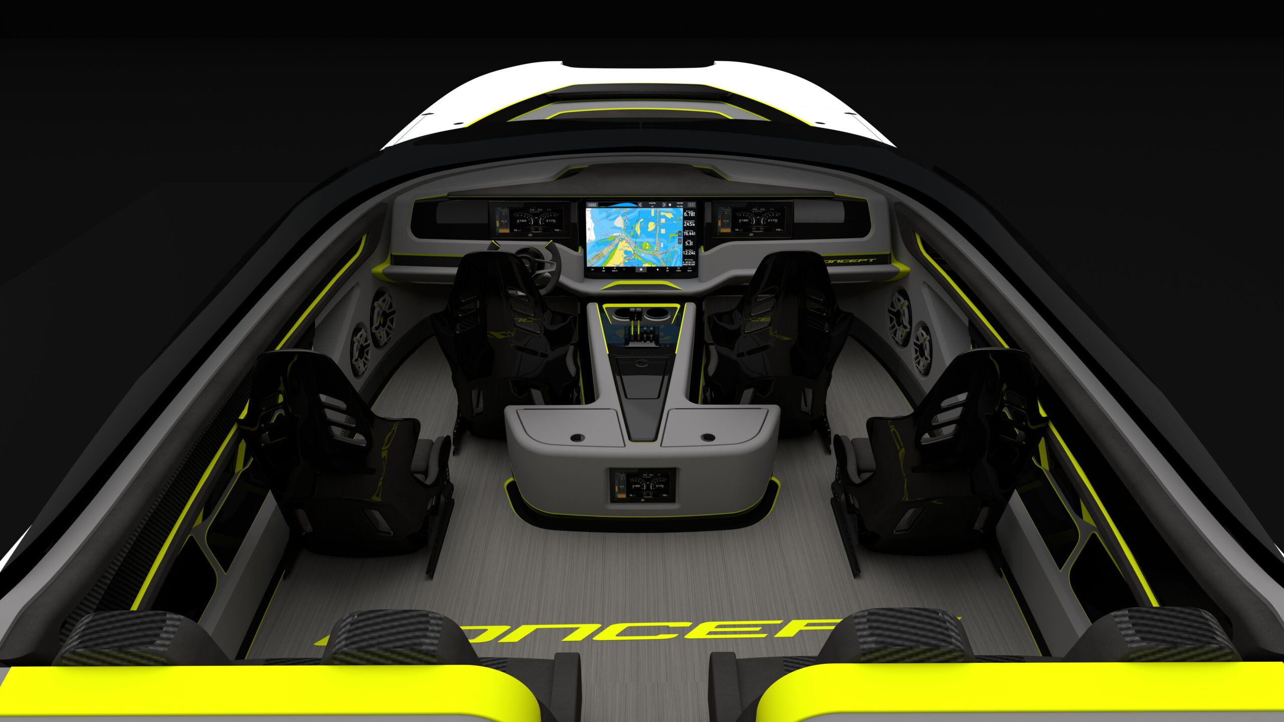 At the helm, two integrated fiberglass coolers are centrally positioned to enhance onboard comfort while eliminating the need for loose, portable coolers on deck. A lower-mounted GPS display ensures second-row passengers can easily view speed and performance data while underway, keeping everyone connected to the ride.